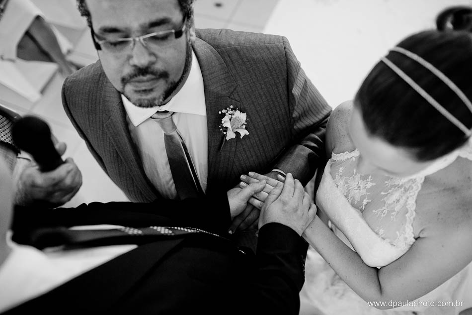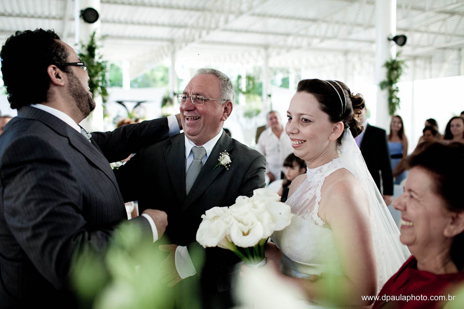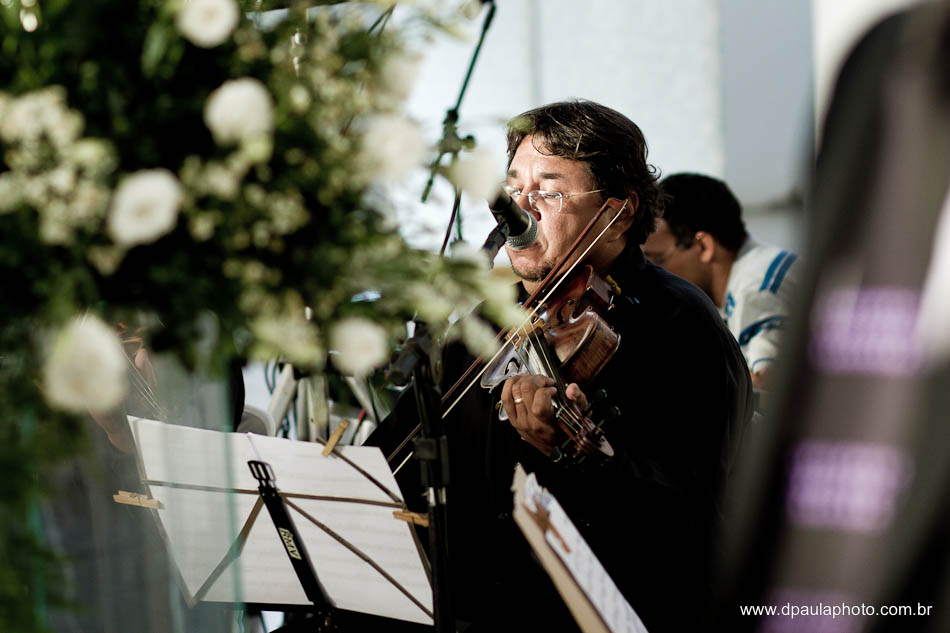 O Fernando é o tipo do cara não convencional. Se é possível ser diferente, que faça-se assim. E assim foi. Do celebrante, Pr. Geraldo Beulke, amigo do casal, que começou a cerimônia antes mesmo dos noivos entrarem. E não foi por atraso. Foi assim, diferente. E a entrada da Hiltnar, que ao invés de marcha nupcial, foi cantada, pelo próprio Fernando. Uma canção composta na madrugada daquele casamento, em apenas meia horinha. O que eu demoraria a vida toda para compor, ele fez em poucos minutos. Um dom para poucos. Impossível não se emocionar com o ato e a letra. E claro, tudo surpresa!