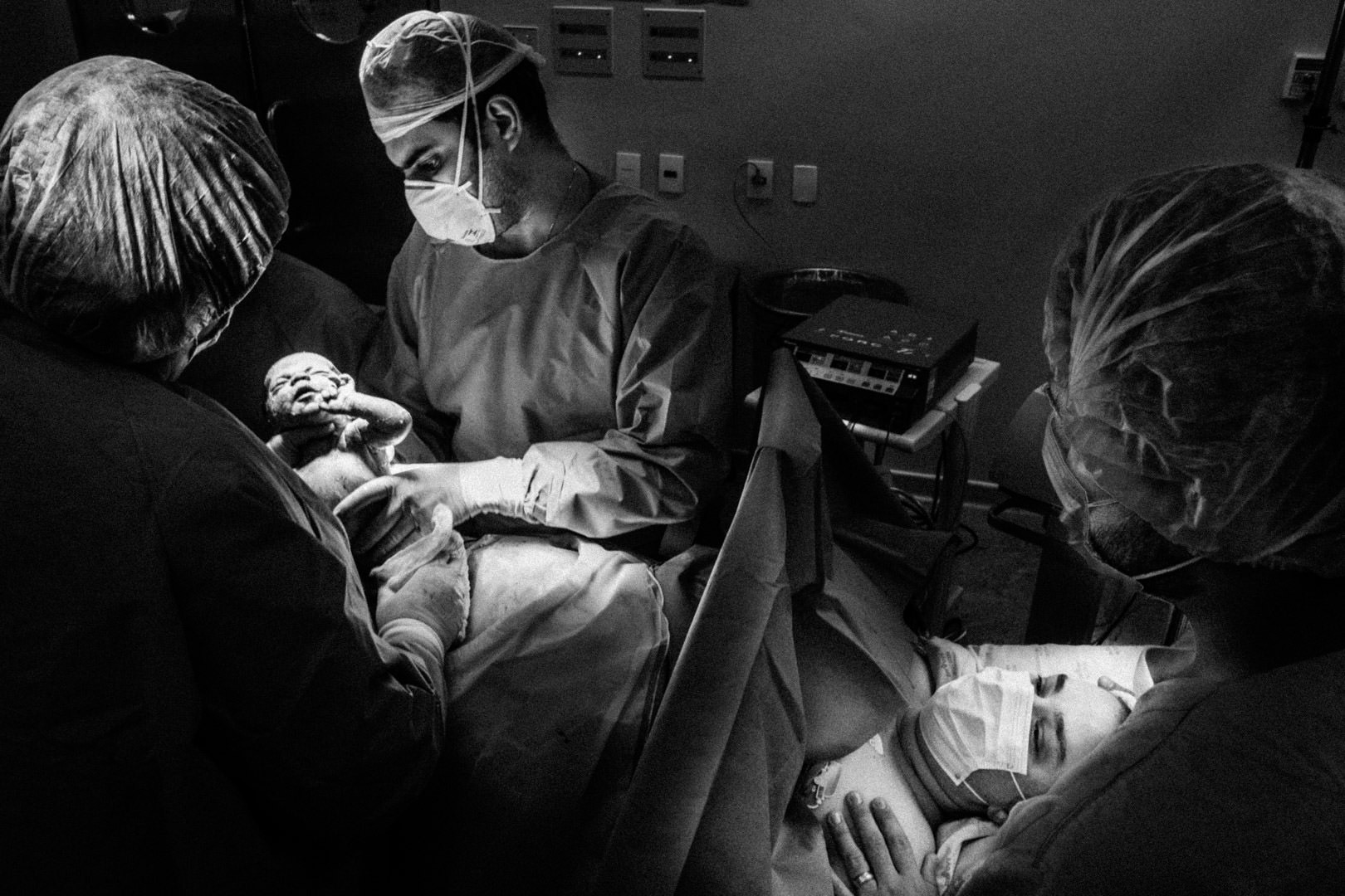 Diferente do habitual, eu não pude entrar para o quarto e documentar os momentos de antes e depois do parto, que na maioria das vezes está repleto de familiares. Eu entrei e saí direto para a sala de parto.